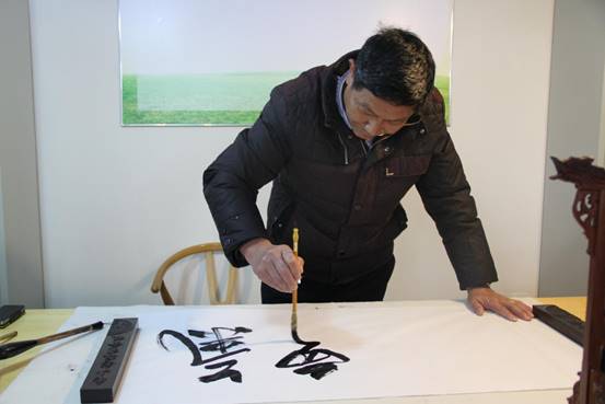 老人在文化小栈练习书法